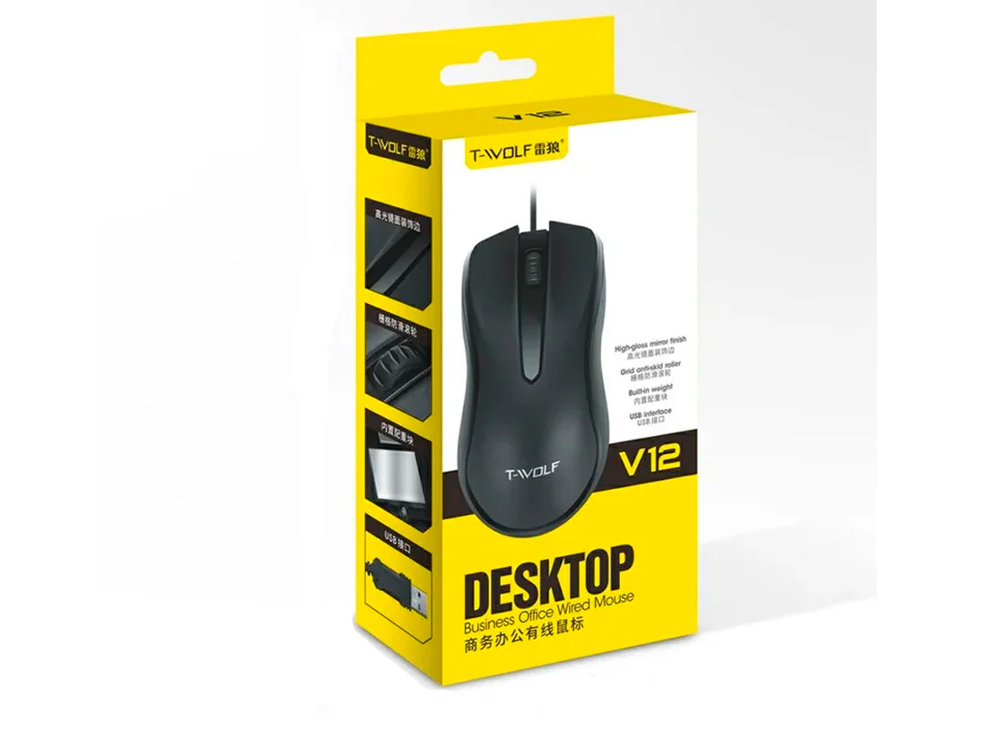 El Mouse T-WOLF V12 es un mouse cableado práctico y cómodo, ideal para uso diario en oficina, hogar o estudio. Con un diseño ergonómico, sensor óptico eficiente y un tamaño ligero, ofrece control preciso del cursor y funcionamiento fiable sin necesidad de instalar software adicional.
